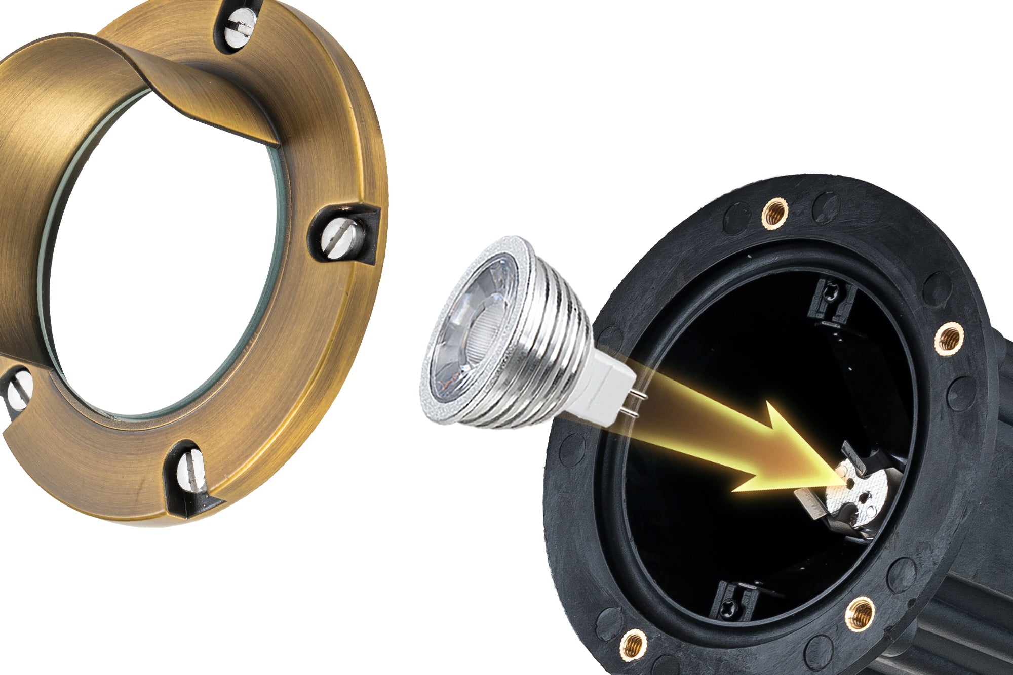 Unscrew the upper part, put the bulb into the gu5.3 socket, no need to replace whole housing. (MAX 50W MR16 3000K LED Bulb included)