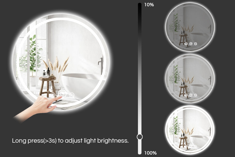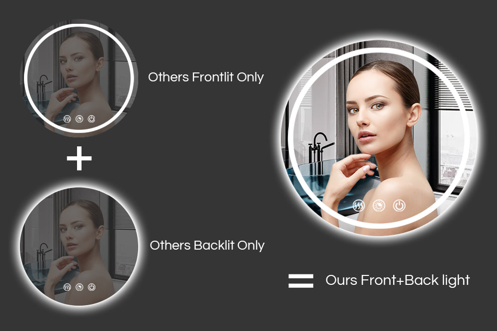 The LED bathroom mirror adopts backlight and frontlight design, and the dual light source design makes the mirror brighter. (Warm Tips: It cannot illuminate the entire bathroom)