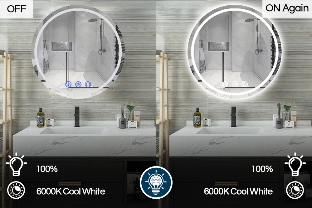 The LED mirror has a memory function that retains the last setting when the light is turned on again.