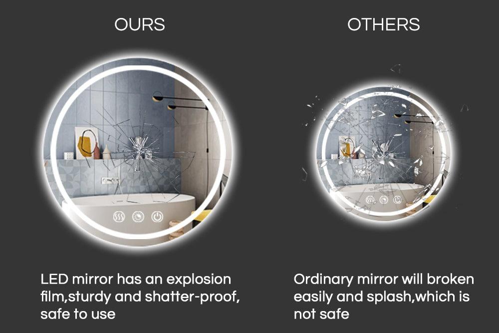 Our bathroom mirror with light is made of 5mm copper-free material,ensuring durability and a high-quality reflection.