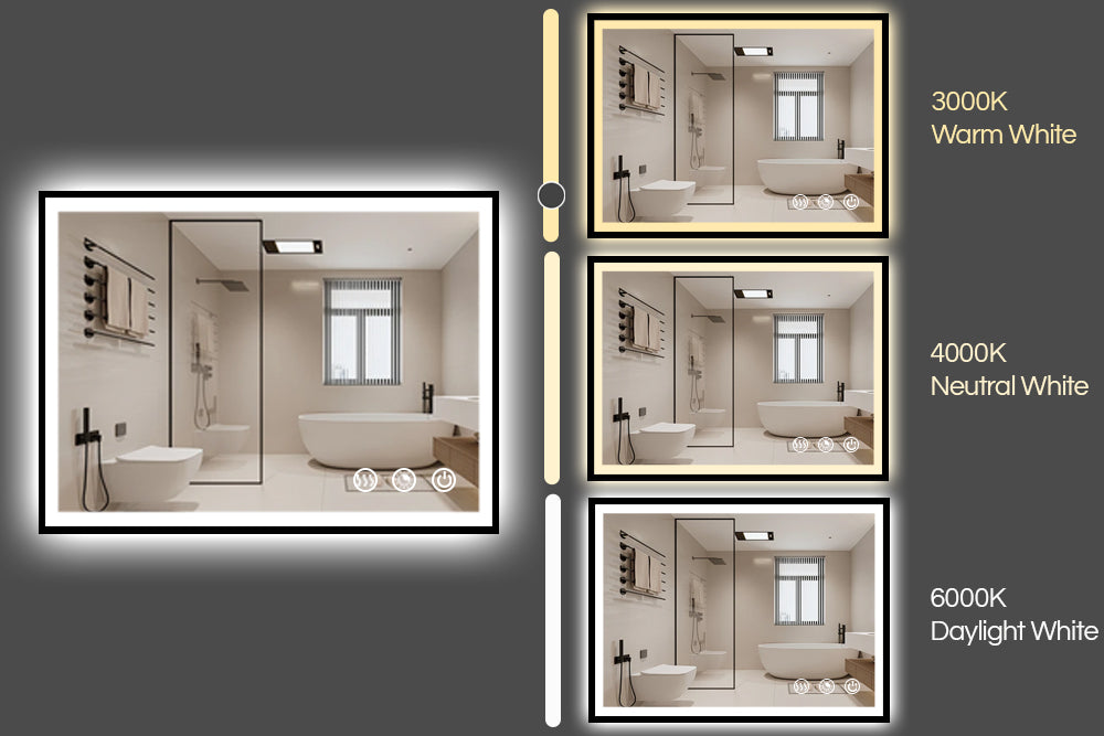 Rectangle 3CCT Dimmable LED Bathroom Mirror with Black Frame