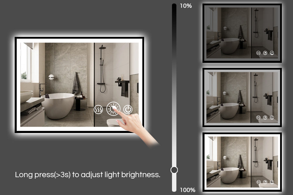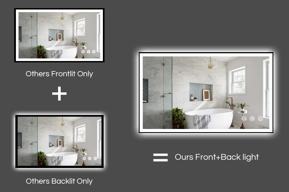 The LED bathroom mirror adopts backlight and frontlight design, and the dual light source design makes the mirror brighter. (Warm Tips: It cannot illuminate the entire bathroom)