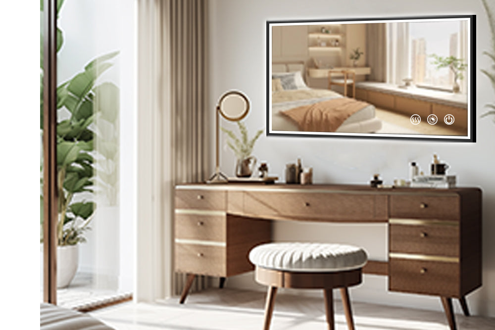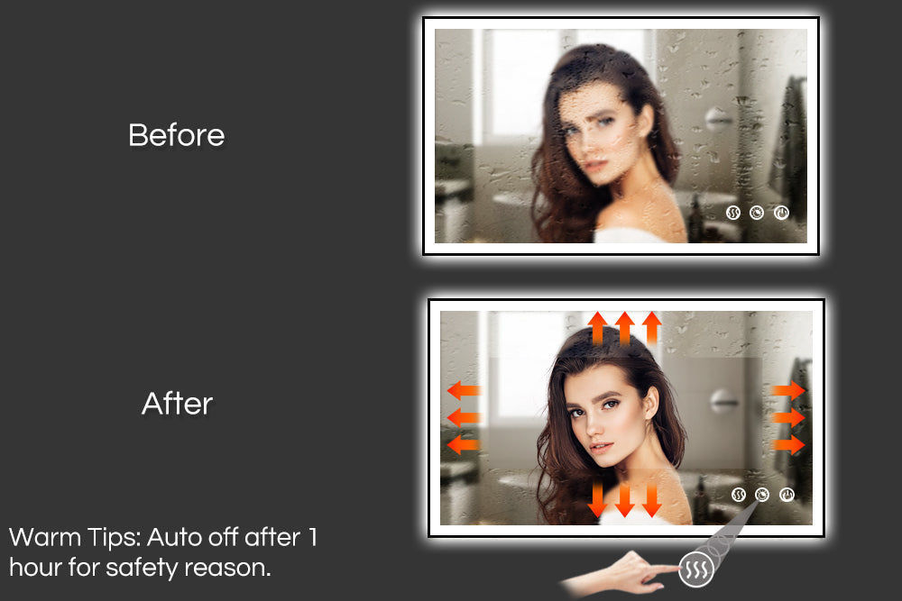 There is a defogging button on the mirror, turn on can prevent the mirror from fogging up and ensure the mirror remains clear,distortion-free refection.