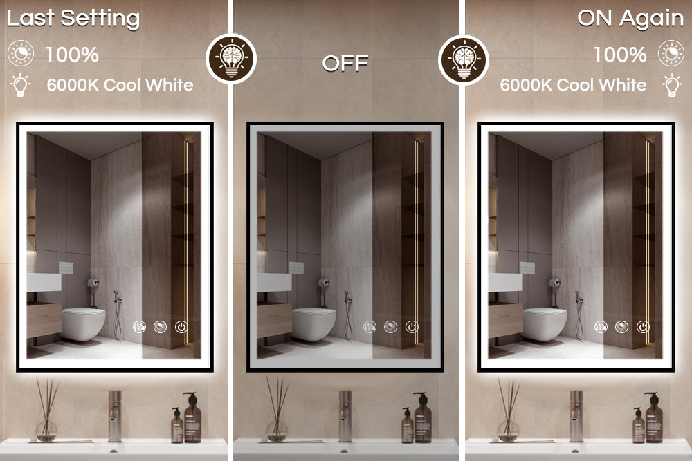 The LED mirror has a memory function that retains the last setting when the light is turned on again.