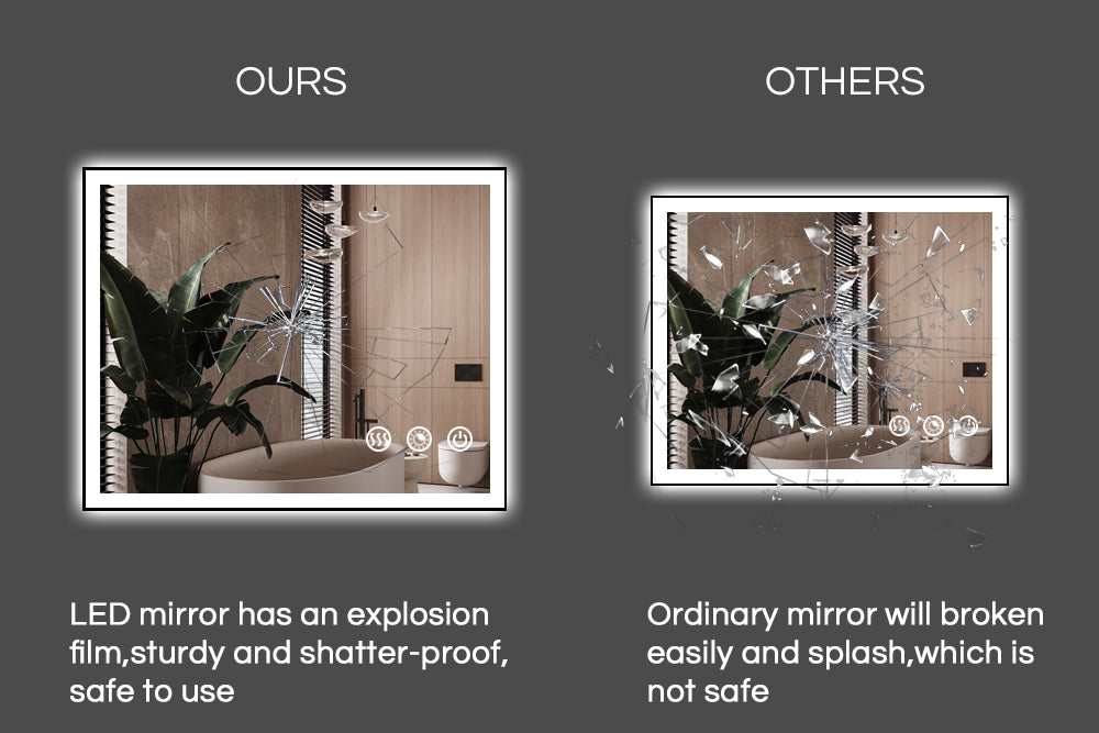 Our bathroom mirror with light is made of 5mm copper-free material,ensuring durability and a high-quality reflection.