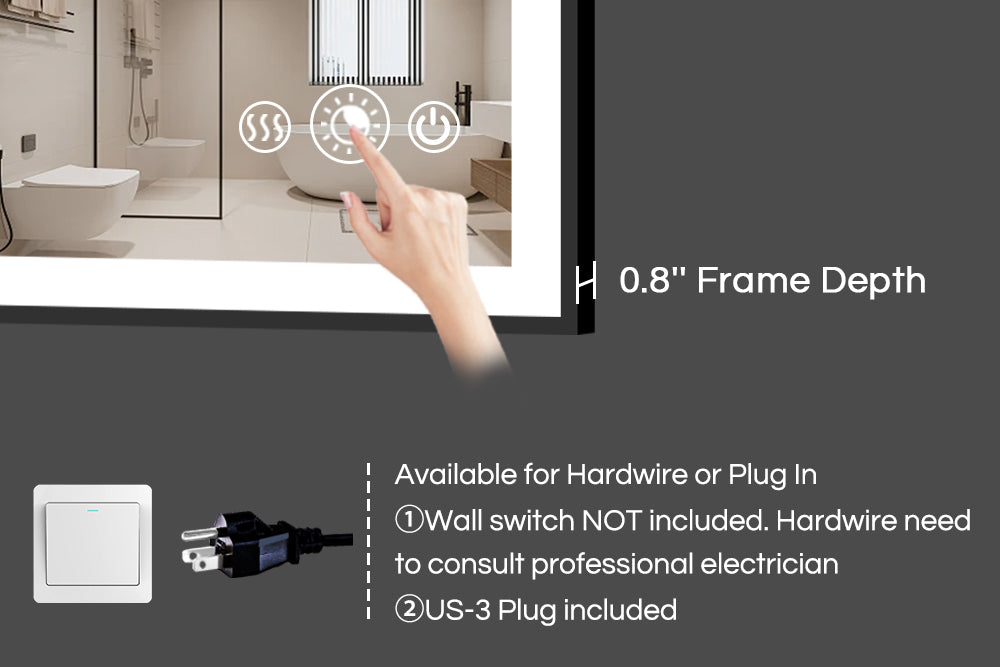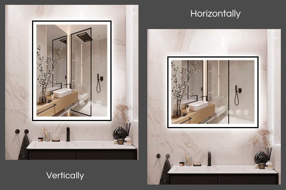 The LED mirror can be installed on the wall horizontally or vertically according to your needs and preferences.