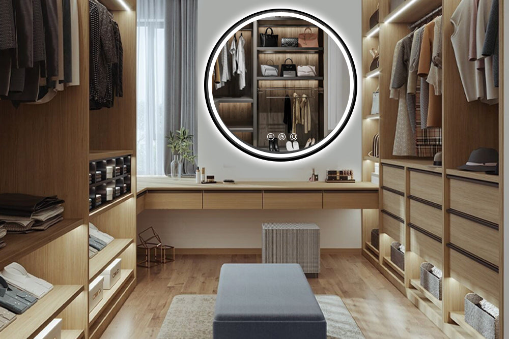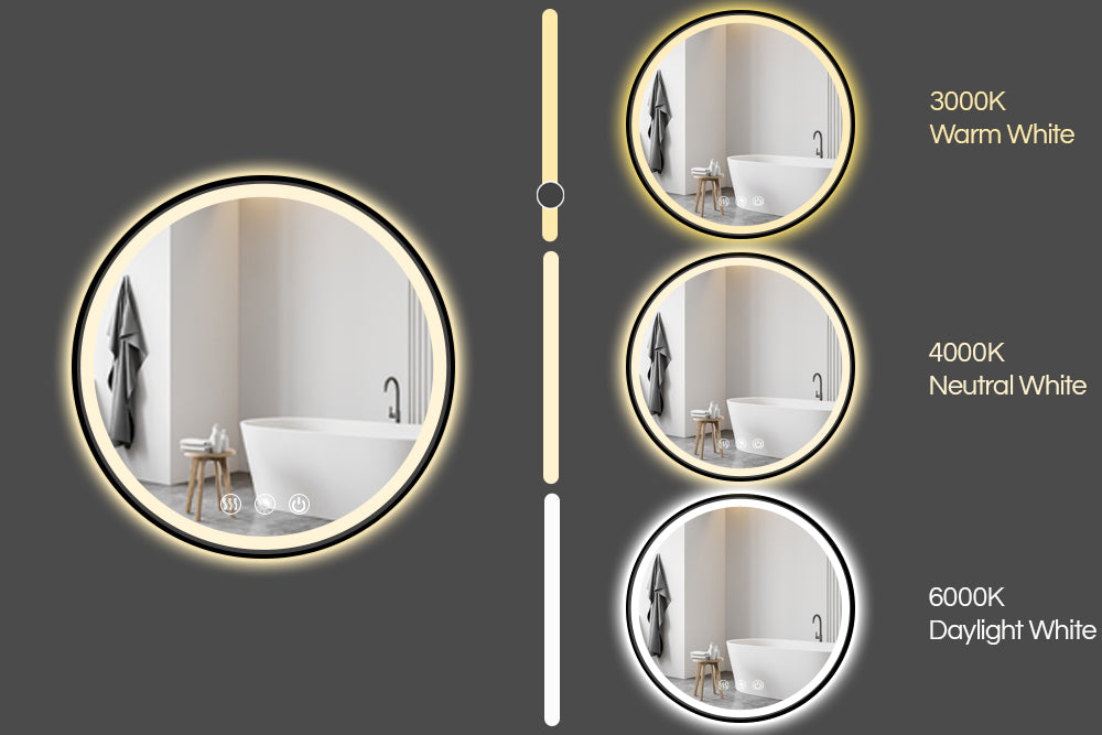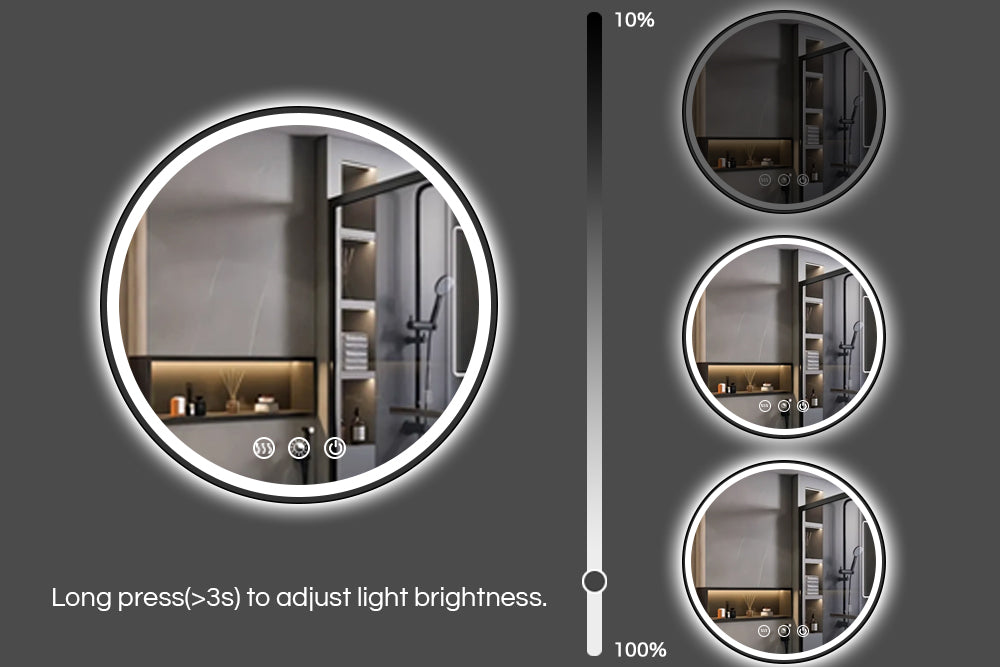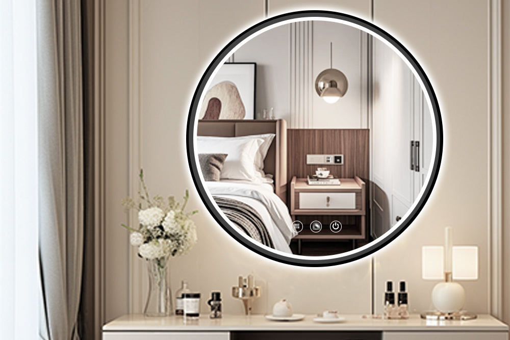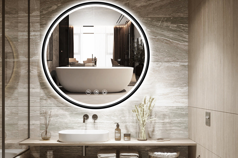 Round Black Frame LED Bathroom Mirror Dimmable Anti-fog