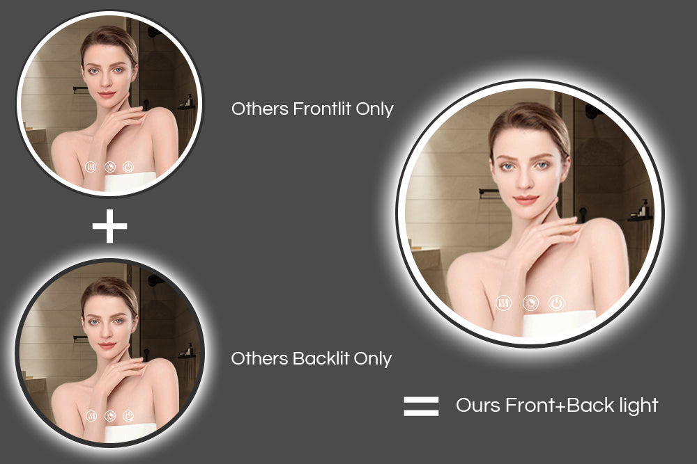 The LED bathroom mirror adopts backlight and frontlight design, and the dual light source design makes the mirror brighter. (Warm Tips: It cannot illuminate the entire bathroom)
