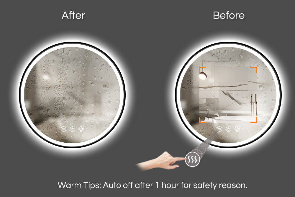 There is a defogging button on the mirror, turn on can prevent the mirror from fogging up and ensure the mirror remains clear,distortion-free refection.
