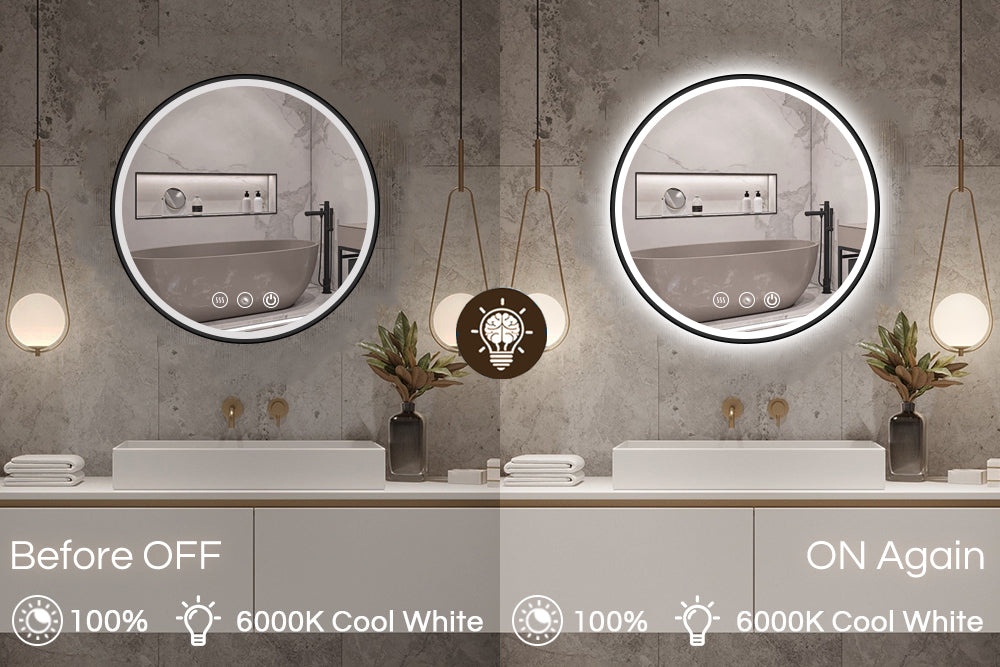 The LED mirror has a memory function that retains the last setting when the light is turned on again.