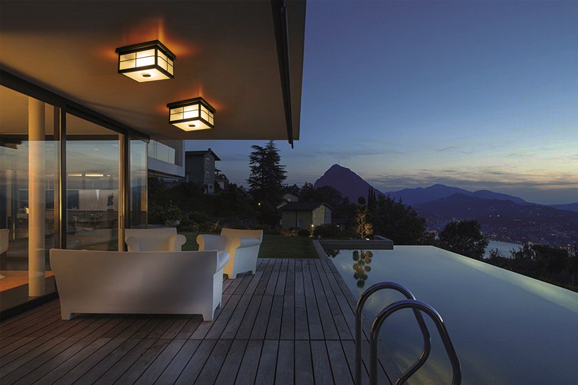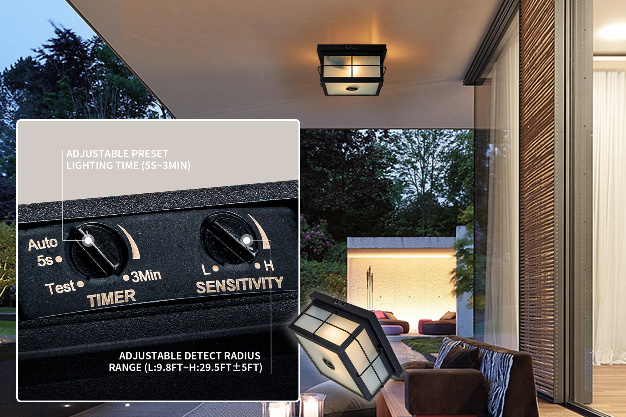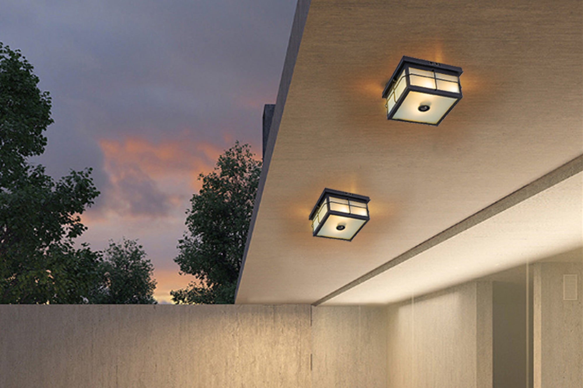 Square Motion Sensor Outdoor Ceiling Light with 2 Lights-064