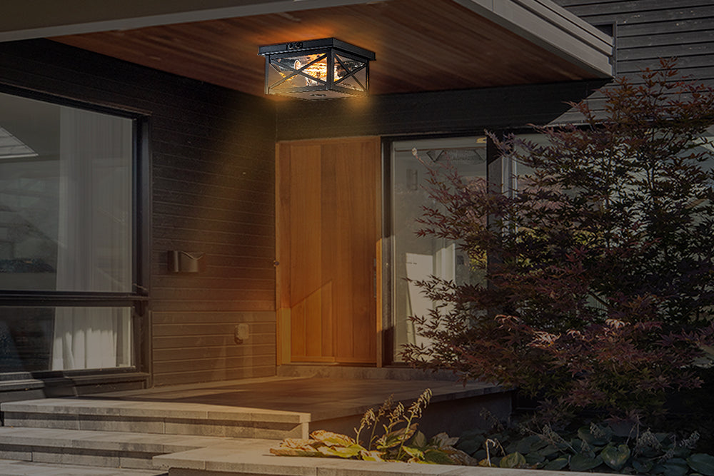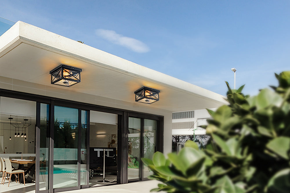 Square Motion Sensor Outdoor Ceiling Light with 2 Lights-039